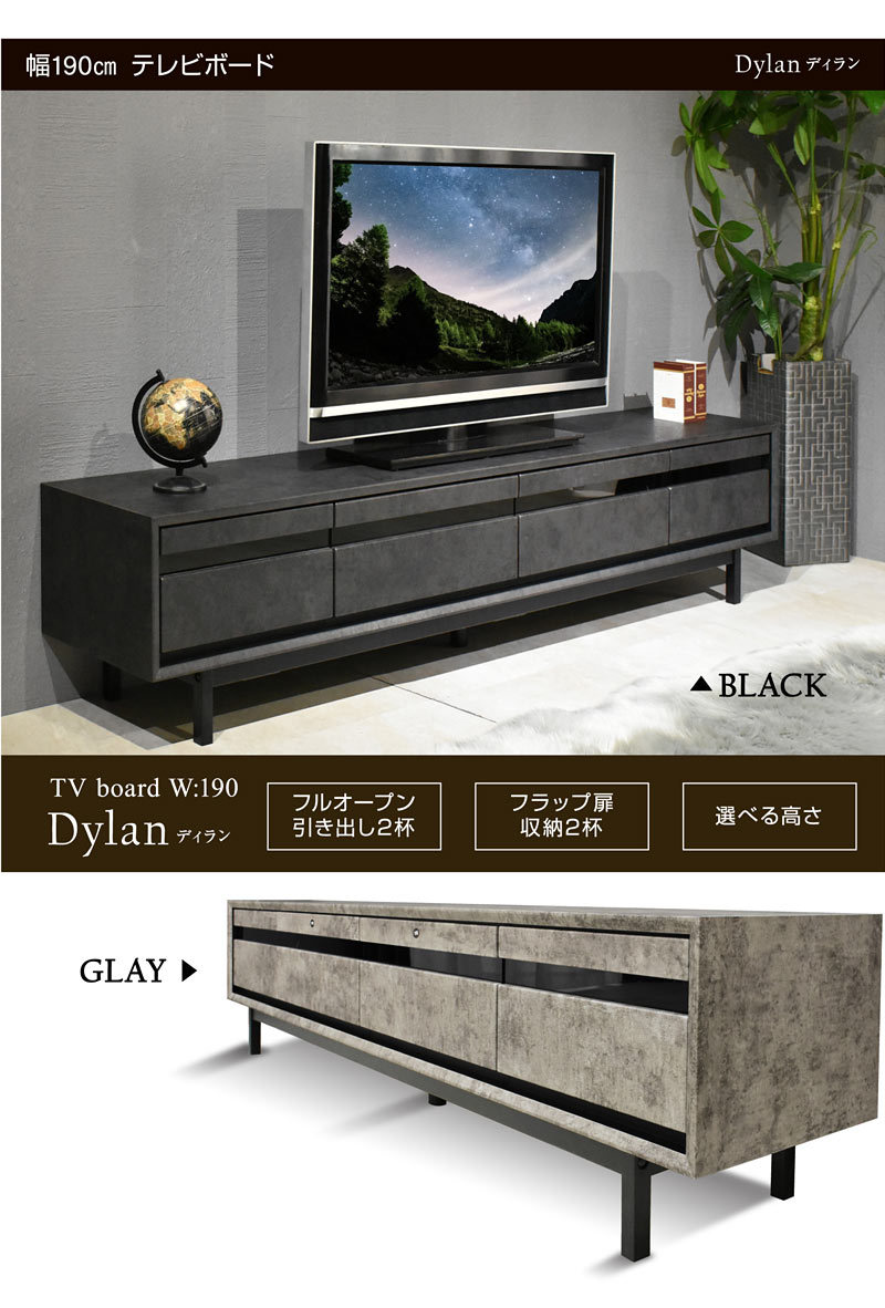 テレビ台 テレビボード ローボード 190センチ TV台 収納 収納棚 リビング ロータイプ 薄型 脚付き ディラン / グレー / -ART