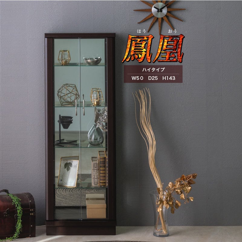 コレクションボード おしゃれ コレクションケース 幅50 奥行25 高さ143cm コレクションラック 展示棚 ガラス棚 フィギュア ガラスケース 鳳凰50H / ブラウン / -ART