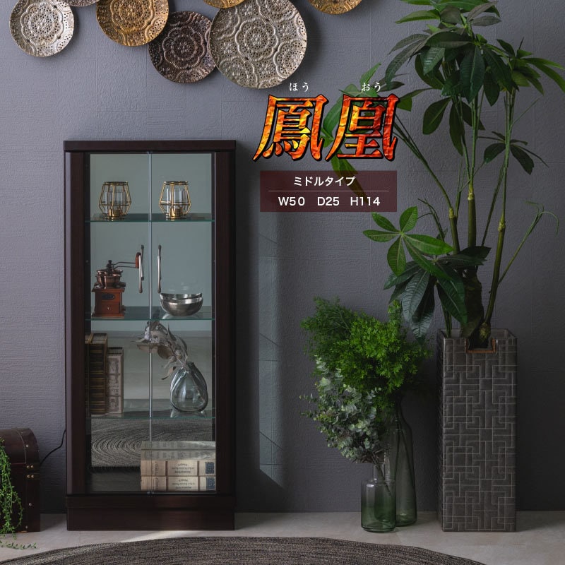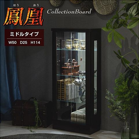 コレクションボード おしゃれ コレクションケース 幅50 奥行25 高さ114cm コレクションラック 展示棚 ガラス棚 フィギュア ガラスケース 鳳凰50M / ホワイト / -ART