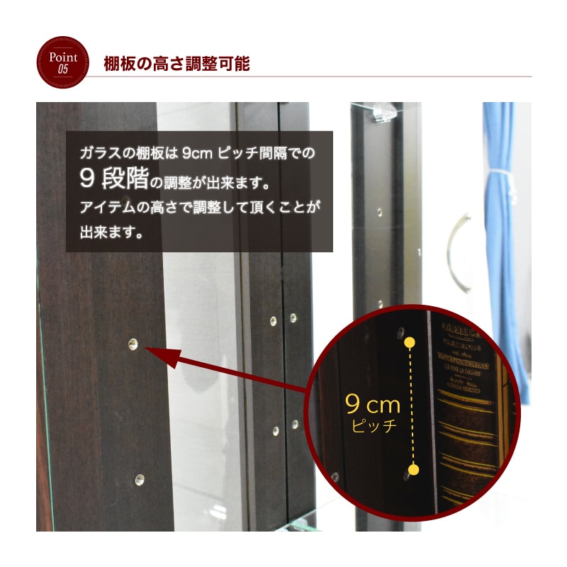 【ほぼ完成品】 ・センスのいいスタイリッシュなコレクションボード ・大切なコレクションを優雅に美しく演出 ・お部屋のテイストに合わせやすい3カラー対応です。 ・ミラー張りの背面で空間を引き立てるコレクションボードです ・3枚のガラス棚板付き 9cmピッチで9段階高さ調節可能 ※LEDライトは付属しておりません ※棚板の追加販売や棚板のみの販売は致しておりません。 |