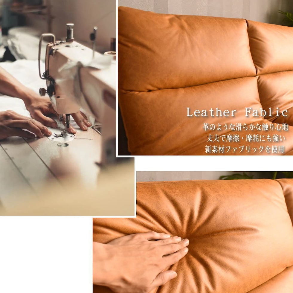 脚はお客様で取り付けとなっております。裏側にファスナーがあり、その中に脚が同梱されています。 カラーはキャメルブラウンにフレーム下はダークブラウンのツートンタイプになります。 座面・背もたれにはふっくらシリコンフィルクッションにウレタンフォーム&S字スプリングが入っており、トリプルクッションでやさしい反発力で体を支えます。(硬さは柔らか) 張地はバックレザーのような優しい手触りの新素材ファブリック張りです。 素材はキズ・摩耗に強く末永くご使用頂けます。 脚を外してロータイプとしてもご使用になれます。 背もたれは3段階リクライニング機能付き。 2WAYタイプなので、広々3Pソファーとして、足を伸ばして座れるカウチソファとしてもお使い頂けます。 |