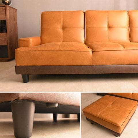 ソファ ソファー 新素材ファブリック張り ソファーベッド オットマン付き / キャメル / -ART