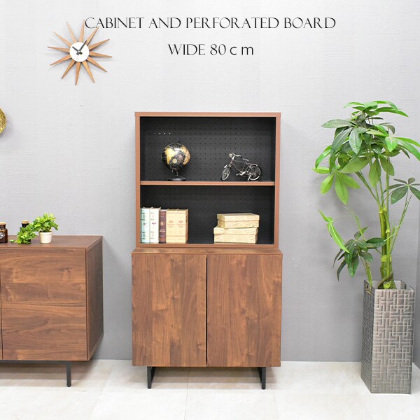キャビネット 有孔ボード 収納 棚 可動棚 可動式 たな しゅうのう きゃびねっと ボード ラック おしゃれ リビング シンプル モダン 扉付き 6段階 8段階 / ブラウン / -ART