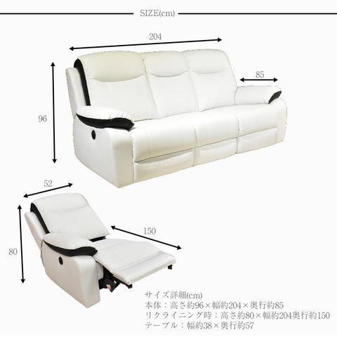 ソファ ソファー リクライニングソファ リクライニングソファー 電動 電動リクライニングソファ 電動リクライニングソファー テーブル付き / ホワイト / -ART