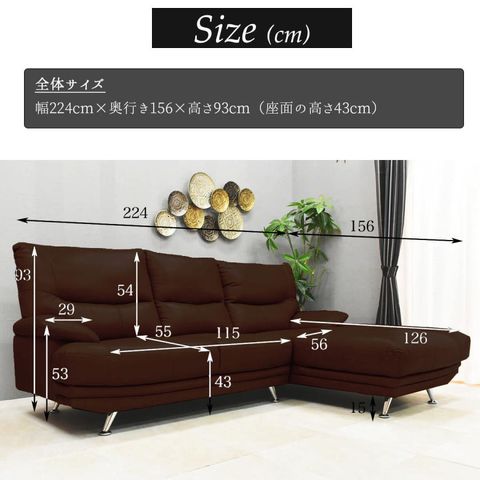 | サイズ | 全体:幅225×高さ91×奥行154(cm) 座面高さ41(cm) 2Pのみ:幅140×高さ91×奥行85(cm) 座面高さ41(cm) カウチのみ:幅90×高さ91×奥行154(cm) 座面高さ41(cm) |