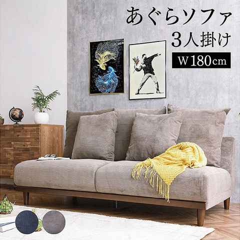 組立設置付 ソファ ソファー 3人掛け 三人掛け ファブリック コーデュロイ ソファ あぐら ハイバック リビングソファ ラドン2 / ブラウン / -ART