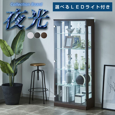 選べるLED照明付 コレクションボード LED 電飾 高148 ハイタイプ コレクションケース ディスプレイ おしゃれ 完成品 148 夜光 / ラック:ブラウン / LED:ホワイト / -ART