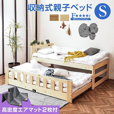 親子ベッド 天然木 コンセント付き スライド収納式 二段ベッド 2段ベッド 木製ベッド 子供用ベッド ツインズ / ナチュラル / (エアーアートマットレス2枚付) -ART