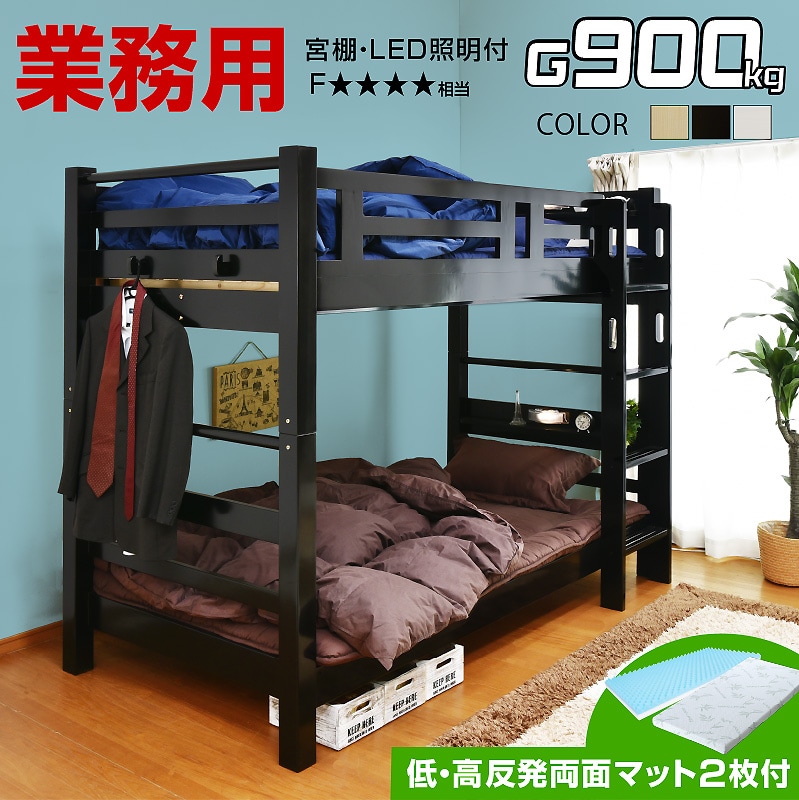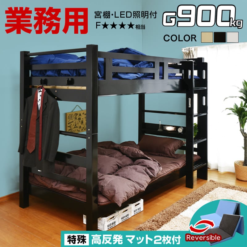 | 特徴 | \アウトレットで激安大特価!/ ・上下段LED照明、スライド式コンセント付き ・垂直はしごでスペースの有効活用が可能 ・上下空間が約1m有り大人でも余裕の出入り ・成人男性5人が乗っても余裕の耐荷重! ・北欧産のパイン無垢材を使用 ・耐震式の上下連結でぐらつきをなくす ・シングルベッド対応 ・社員寮や学生寮・民泊等でもご使用頂けます |