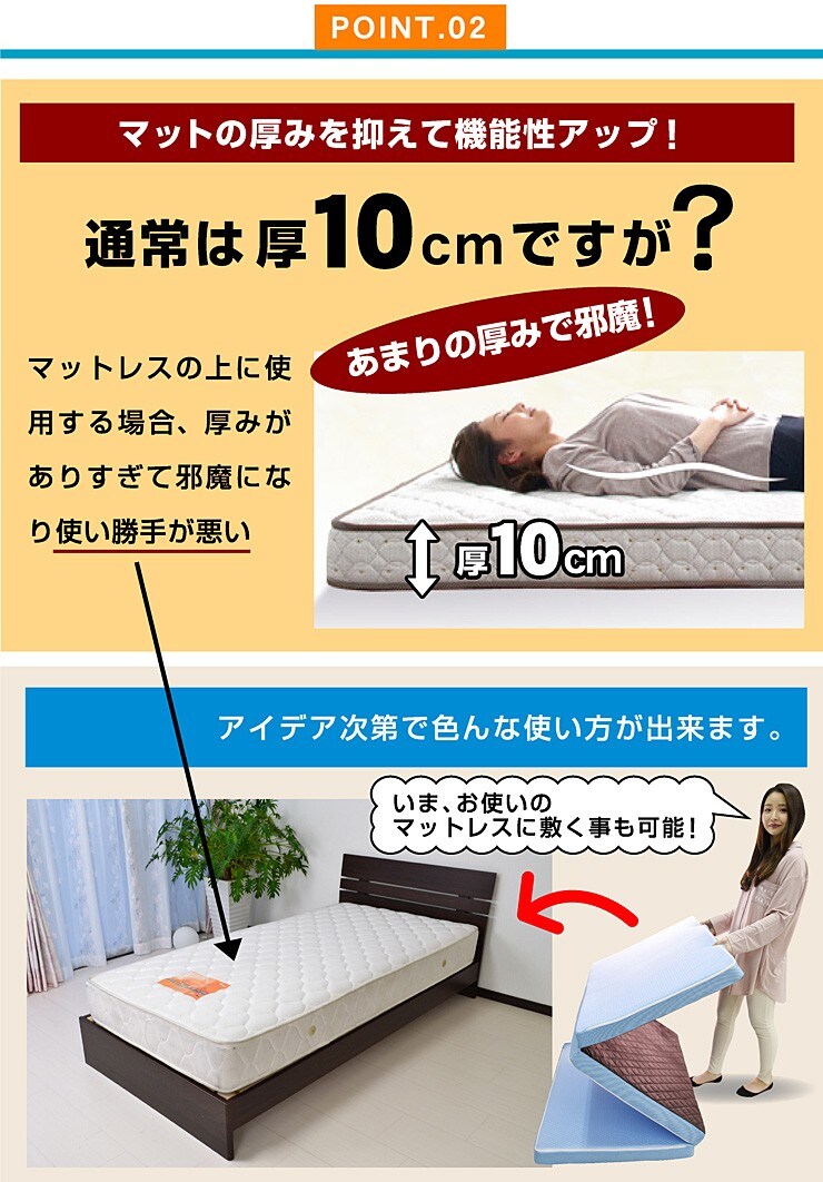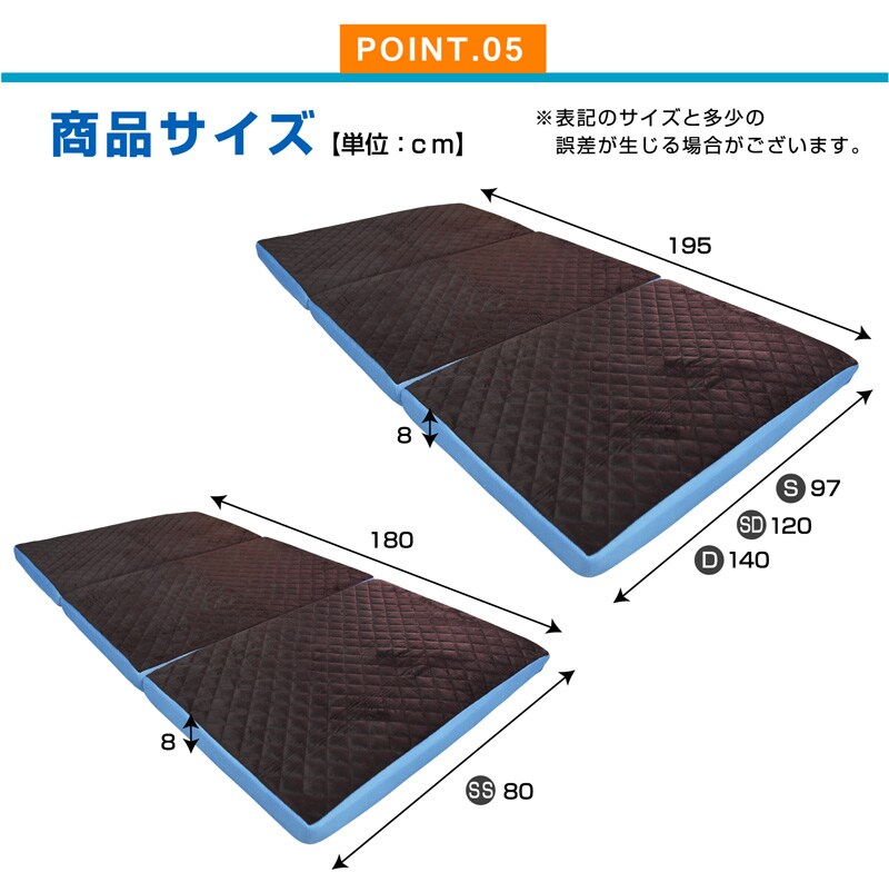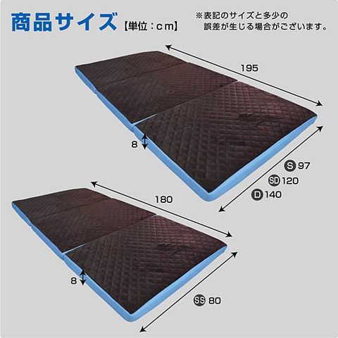| サイズ | セミダブルサイズ:幅120×奥行195×厚み8(cm) |