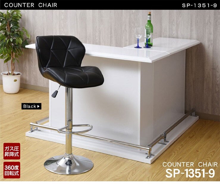 カウンターチェア SP1351-9 バーチェア ハイチェア PUレザー張り 背もたれ付き ウレタンクッション / ブラック / -ART