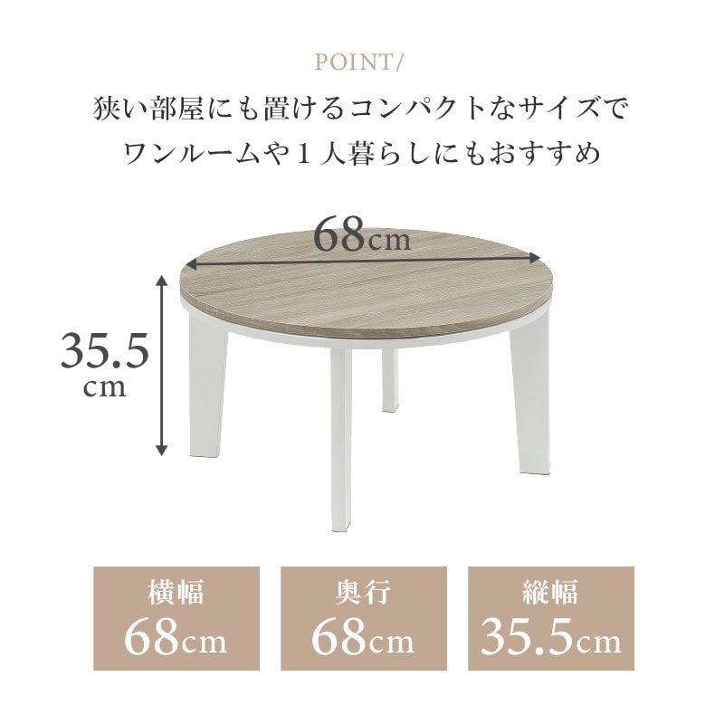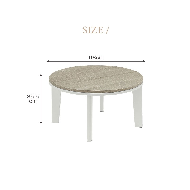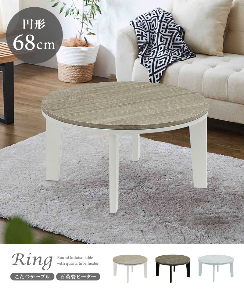 こたつテーブル センターテーブル ロータイプテーブル ロータイプ 丸型 円形 幅68cm ヒーター付き エコ 省エネ オールシーズン 木目調 大理石調 リング / ライトグレー / -ART