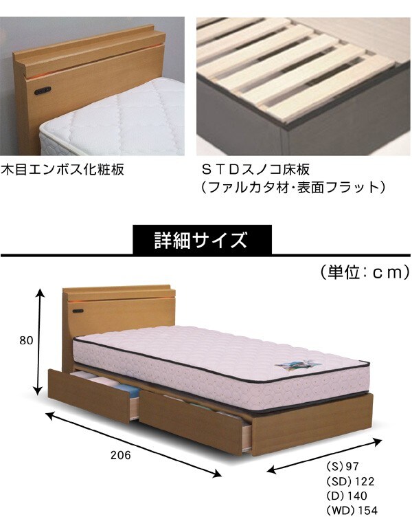 | シングル | W97×L206×H80×FH22.5(22/29.5)cm |