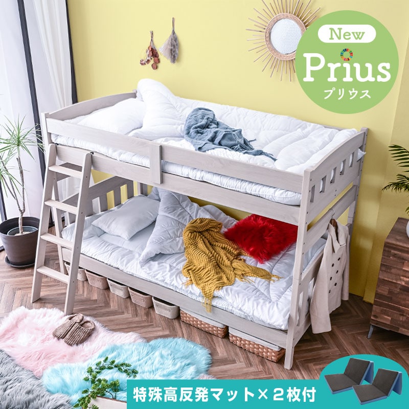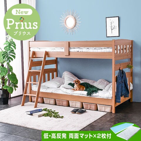 二段ベッド 2段ベッド ベッド 耐震 耐荷重300kg 頑丈 天然木 竹製 分割 分離 はしご 木製 LVLすのこ SDGs 収納 NEWプリウス / ナチュラル / (低反発 高反発 両面マット2枚付) ーART