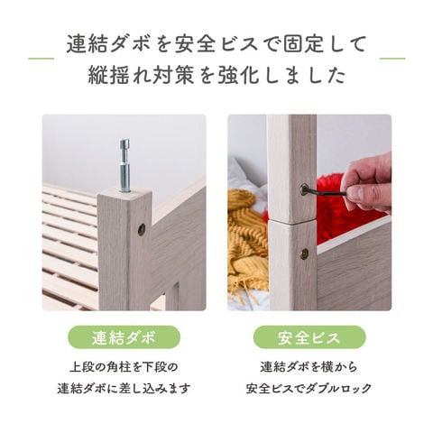| 補足・注意 | 【要組立品】 ・画像にある小物は付属していません。 ・実物に近い状態で撮影していますが、撮影時の光の加減やお客様のPC設定により若干の色合いが異なる場合がございます。 ・曲線部分や若干の個体差により、多少の誤差が生じることがございます。 ・組立後、床板に直接乗ると体圧が一点に集中し破損の原因となりますので、必ず寝具を設置後にお乗りください。 ・旧タイプのレビューも含まれています ・商品は予告なく仕様が変更される場合があります。ご了承ください。 |