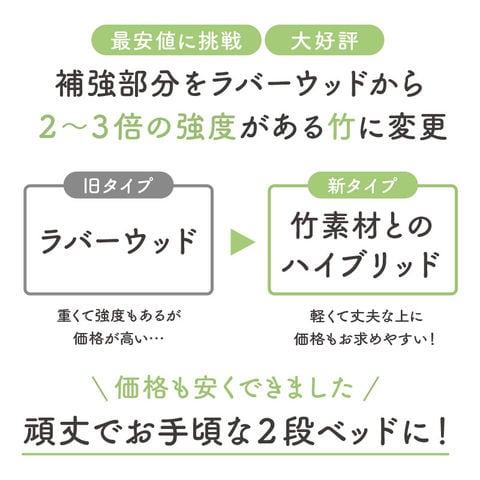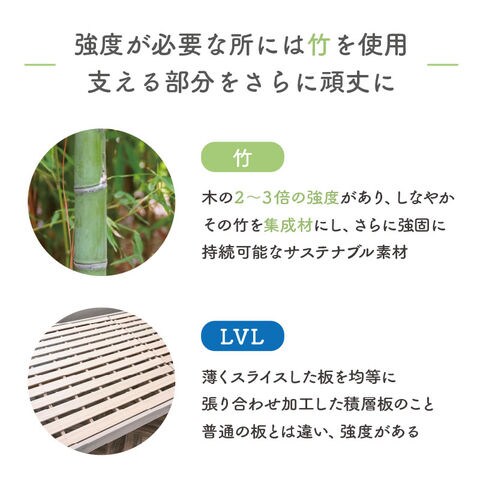 | 材質 | 【全面】MDF強化紙貼り 【柱・補強】竹 【すのこ・補強】LVL |