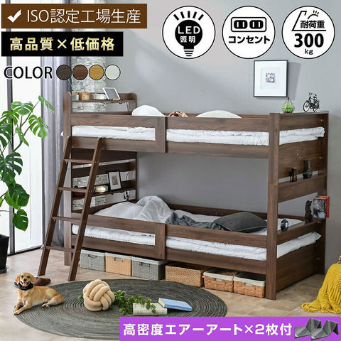 選べる4色 二段ベッド 耐震300kg 2段ベッド シングルベッド シングルベット おしゃれ サローネ2 / ウォールナット / (エアーアートマットレス付) ーART