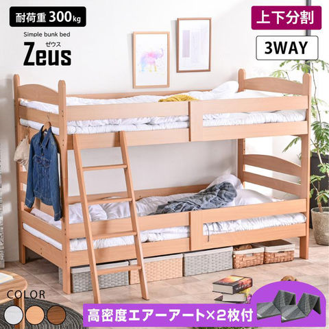 二段ベッド 2段ベッド 大人用 子供 分離 分割 シングル ロータイプ キングサイズ 耐震式 高さ145 ベッド ゼウス / ナチュラル / (エアーアート マットレス付き) ーART