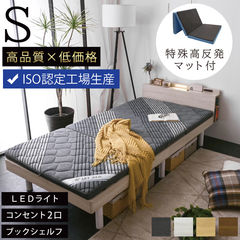 ・あると便利!LED照明付き ・すのこ板に幅広タイプが追加!しっかり支えて強度がアップ! ・枕元に小物等が置ける宮棚付き ・スマホ充電OK!2口コンセント付き ・ホコリが入りにくいスライド式コンセント ・通気性が良いスノコ仕様 ・3段階の高さ調整有り ・豊富なサイズ:シングル、セミダブル、ダブル ・2台購入でキングサイズに |
