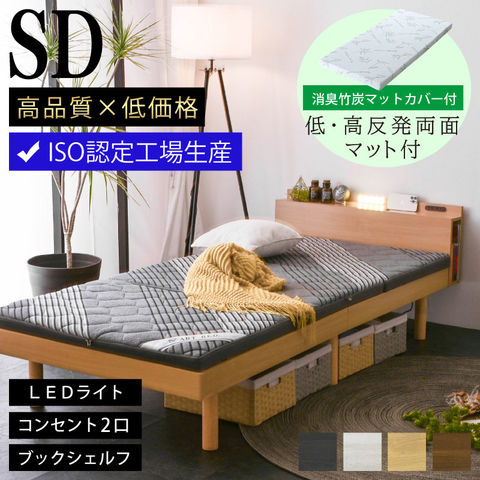 ・あると便利!LED照明付き ・すのこ板に幅広タイプが追加!しっかり支えて強度がアップ! ・枕元に小物等が置ける宮棚付き ・スマホ充電OK!2口コンセント付き ・ホコリが入りにくいスライド式コンセント ・通気性が良いスノコ仕様 ・3段階の高さ調整有り ・豊富なサイズ:シングル、セミダブル、ダブル ・2台購入でキングサイズに |