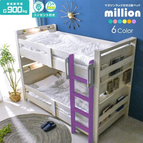 二段ベッド 2段ベッド 耐震式 耐震900kg 大人用 子供 コンセント付き ライト付き シングルベッド 限定品 ミリオン 本体のみ / ラベンダー / -ART