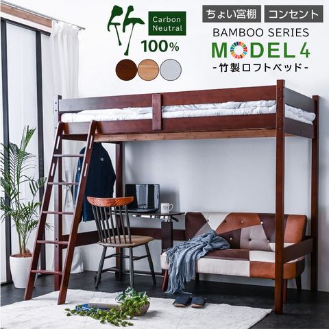 \木の約3倍以上強度がある竹100%使用!/ ・持続可能なカーボンニュートラル ・シンプルデザインが圧迫感を抑えて解放感を演出 ・ベッド下の大きな空間をそのまま活用 ・竹製すのこ床板は抗菌効果 ・安心・安全のホルムアルデヒド濃度 ・中央補強板が入り強度アップ! ・すのこ板を固定し、抜け落ちを防止 ・左右どちらにも設置が可能な宮棚とコンセント付き ・昇り降りを快適にするはしご ・ベッド下は洋服などのちょい掛けに便利 |