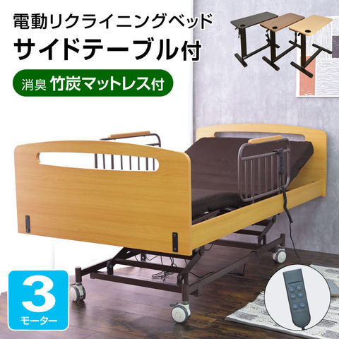 電動ベッド 介護ベッド 電動 リクライニング 3モーターベッド 足上げ 腰痛対策 価格 口コミ ランキング シングル てがる / ベッド:ナチュラル / サイドテーブル:ウォールナット / (サイドテーブル付き) -ART