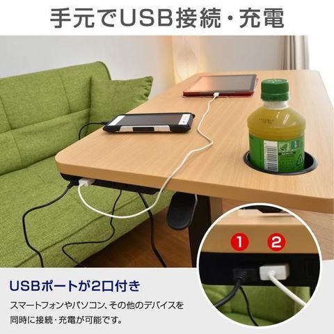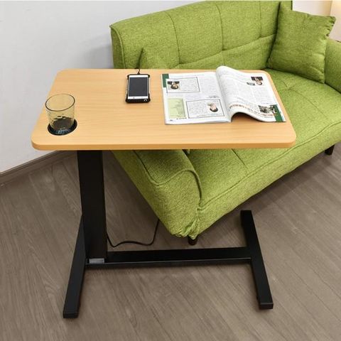 サイドテーブル 昇降テーブル USB カップホルダー コンセント付き 介護テーブル 机 デスク 作業台 テーブル センターテーブル レジェンド / ウォールナット / -ART