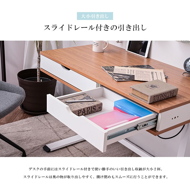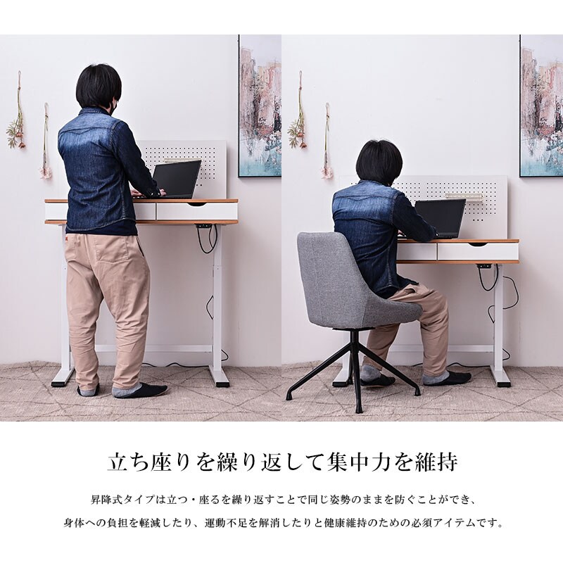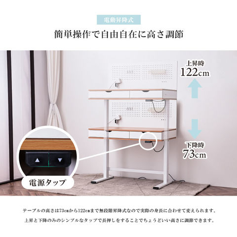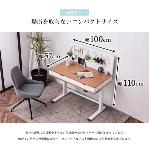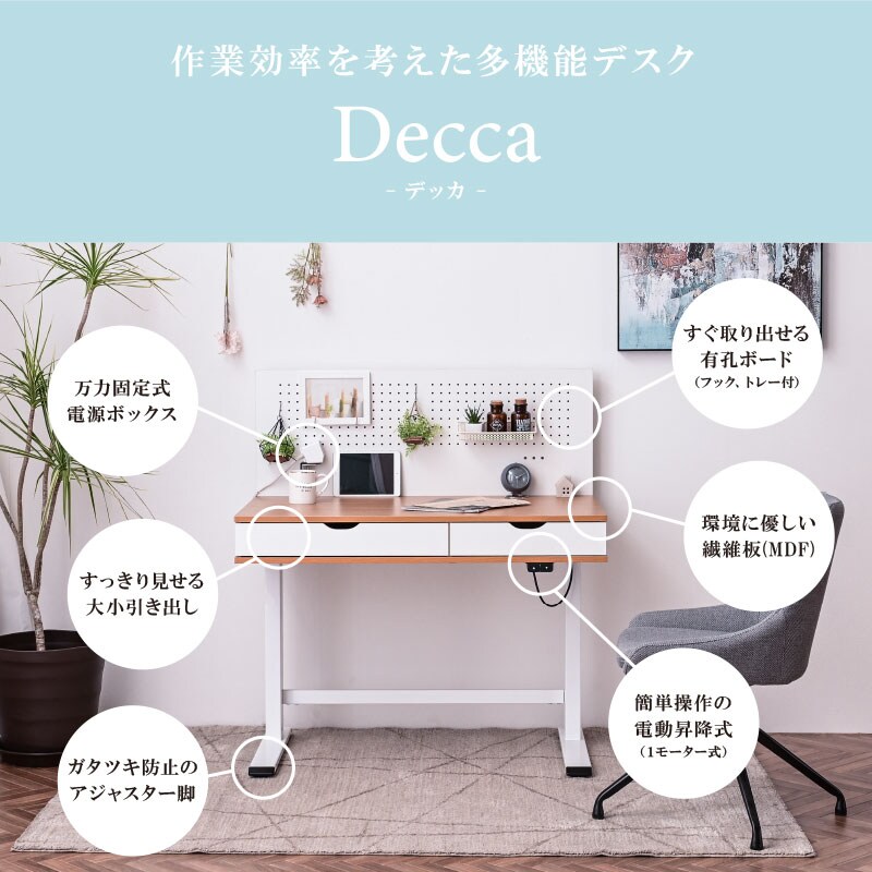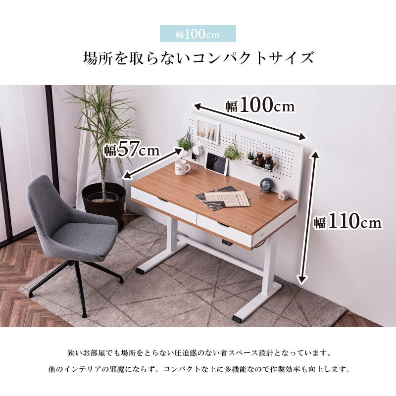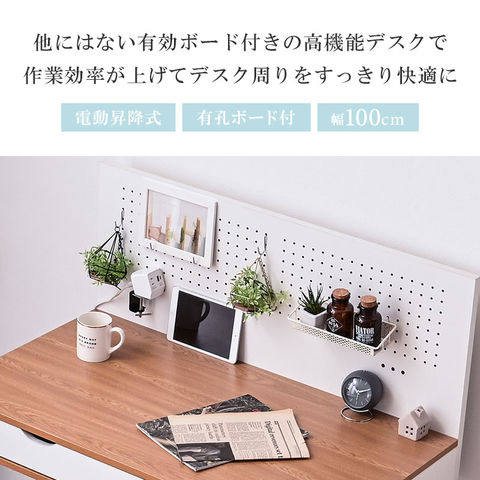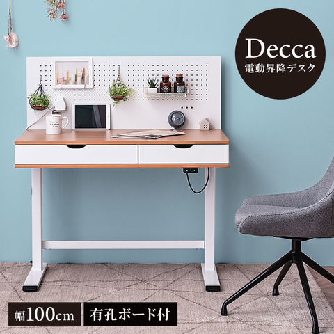 電動昇降デスク 昇降デスク 昇降 高さ調節 幅100cm パソコンデスク 有効ボード ペグボード スタンディングデスク 作業台 木目 シンプル おしゃれ Decca / ナチュラルホワイト / -ART