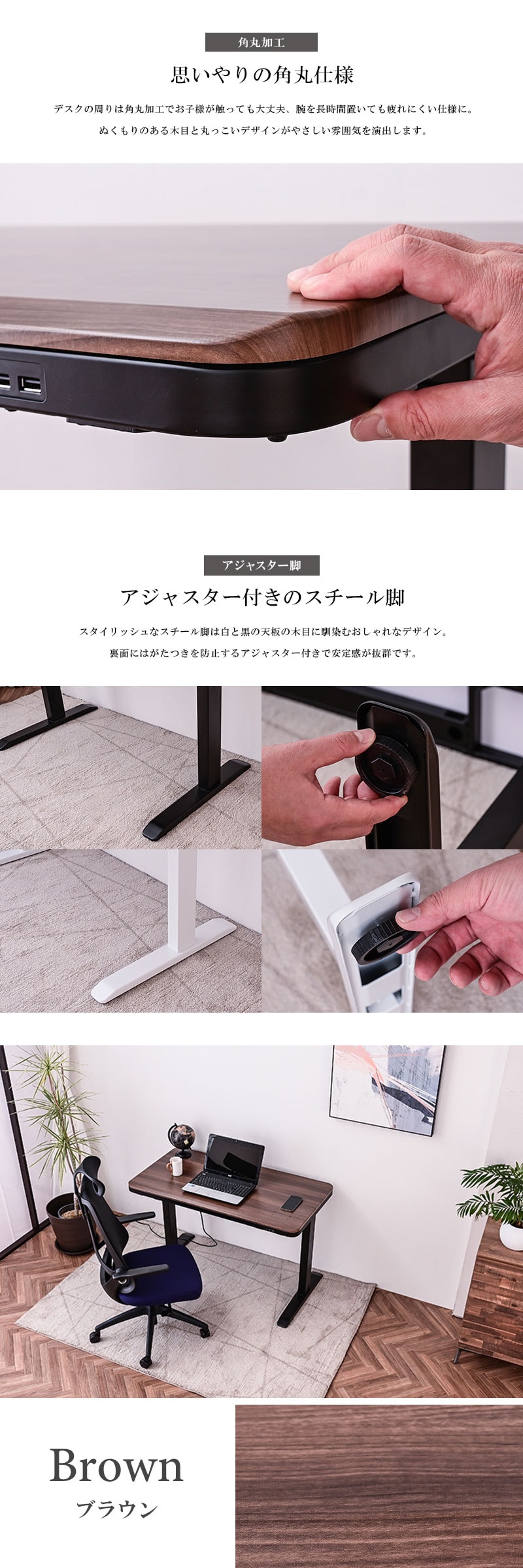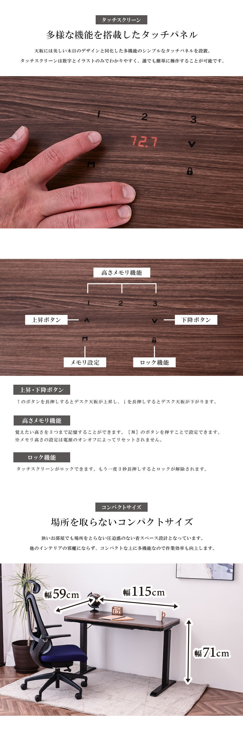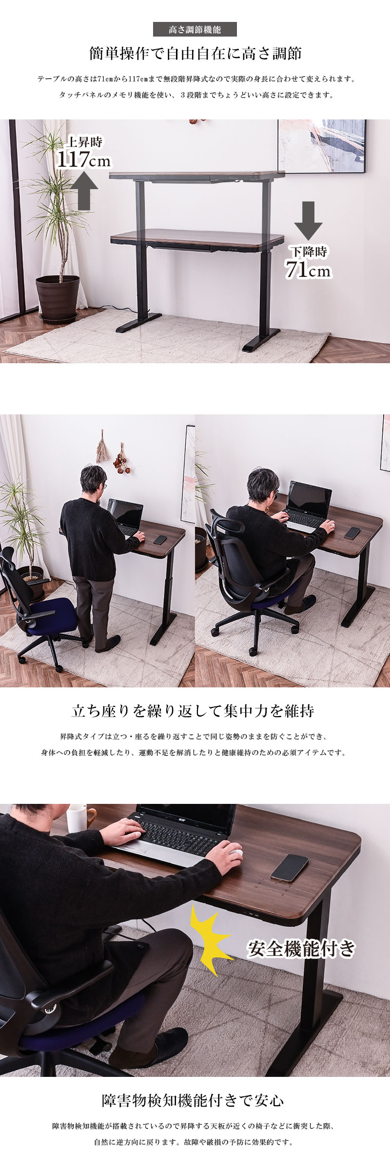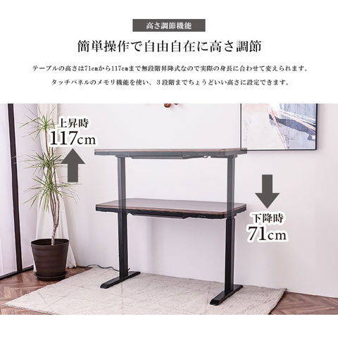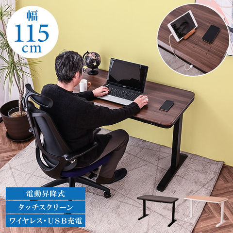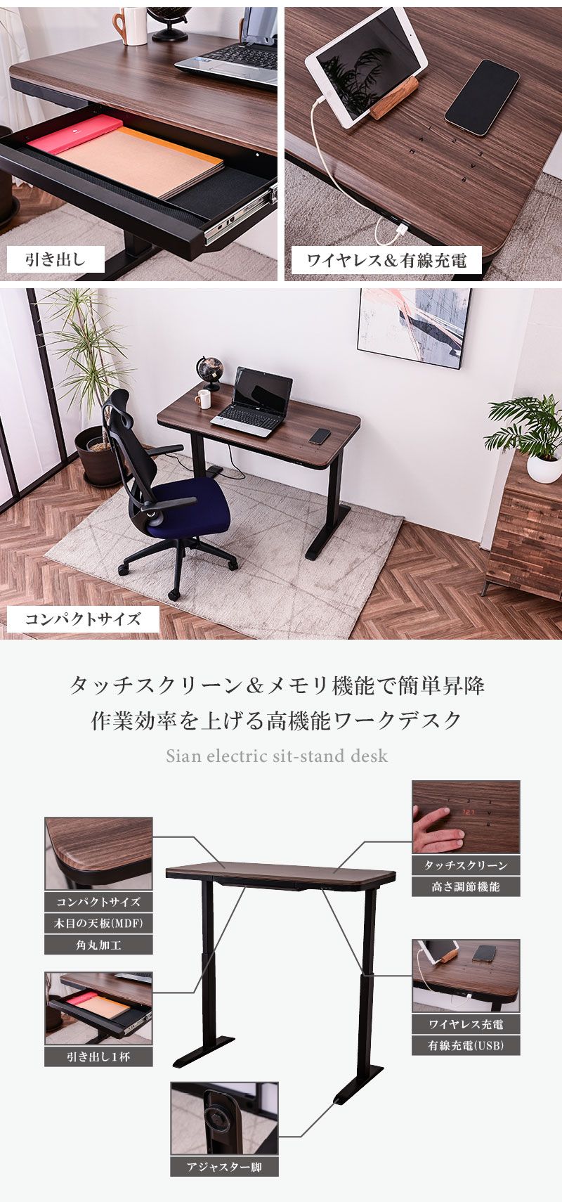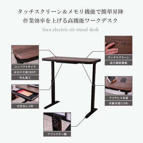 電動昇降デスク 昇降デスク 昇降 高さ調節 幅115cm パソコンデスク ワイヤレス充電 タッチパネル スタンディングデスク 木目 おしゃれ Sian シアン / ブラウン / -ART