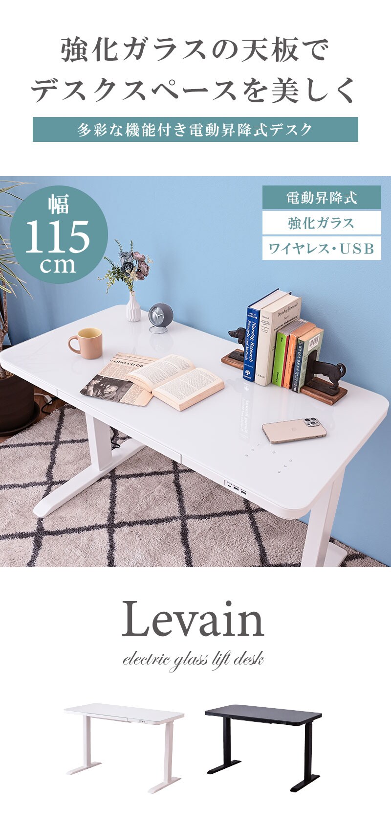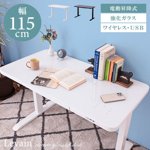 新発売 電動昇降デスク 昇降デスク 昇降 強化ガラス ガラスデスク 高さ調節 幅115cm パソコンデスク コンパクト ワイヤレス充電 タッチパネル おしゃれ ルヴァン / ホワイト / -ART
