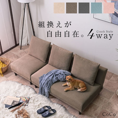4WAY ソファベッド ローバックソファ カウチソファ ローソファ ファブリック 3P 3人掛け 三人掛け 幅180cm 撥水 クッション 肘なし ココ / ライトブラウン / -ART
