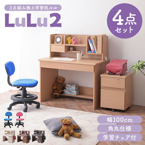 学習机4点セット 学習チェア付き 学習デスク 幅100cm 角丸 コンパクト 省スペース デスク 学習椅子 デスクチェア 木目 組み換え ルル2 / デスク:ナチュラル / チェア:ブルー / -ART