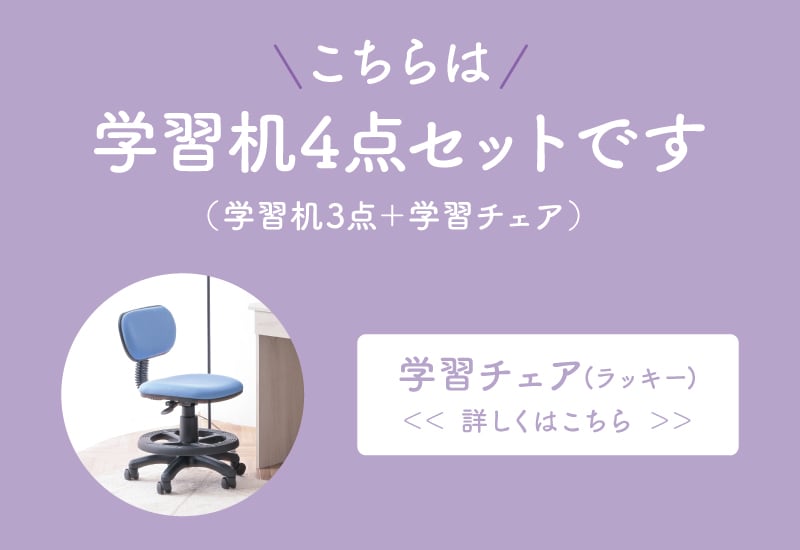 | 内容 | 学習机4点セット(本棚、デスク、チェスト、学習チェア) |