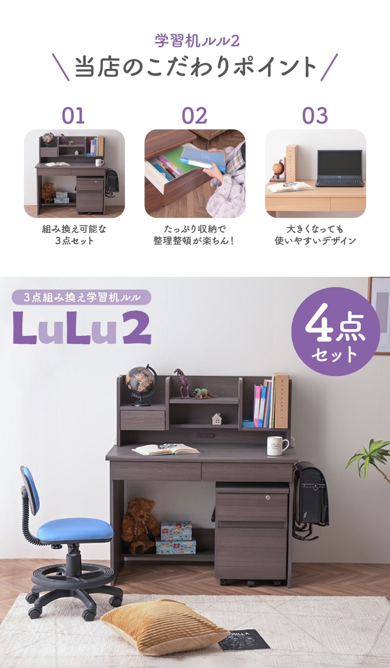 | 特徴 | 【デスク】 ・幅100cmの広々スペース ・角丸仕様でお子様も安心 ・デスク下にも収納スペース 【本棚】 ・3段階可動棚 ・デスクライト置き場 ・2口コンセント 【チェスト】 ・すっきりなライン取っ手 ・ストッパー付きキャスター ・開け閉め楽々なスライドレール ・高さのあるチェスト下段収納 |
