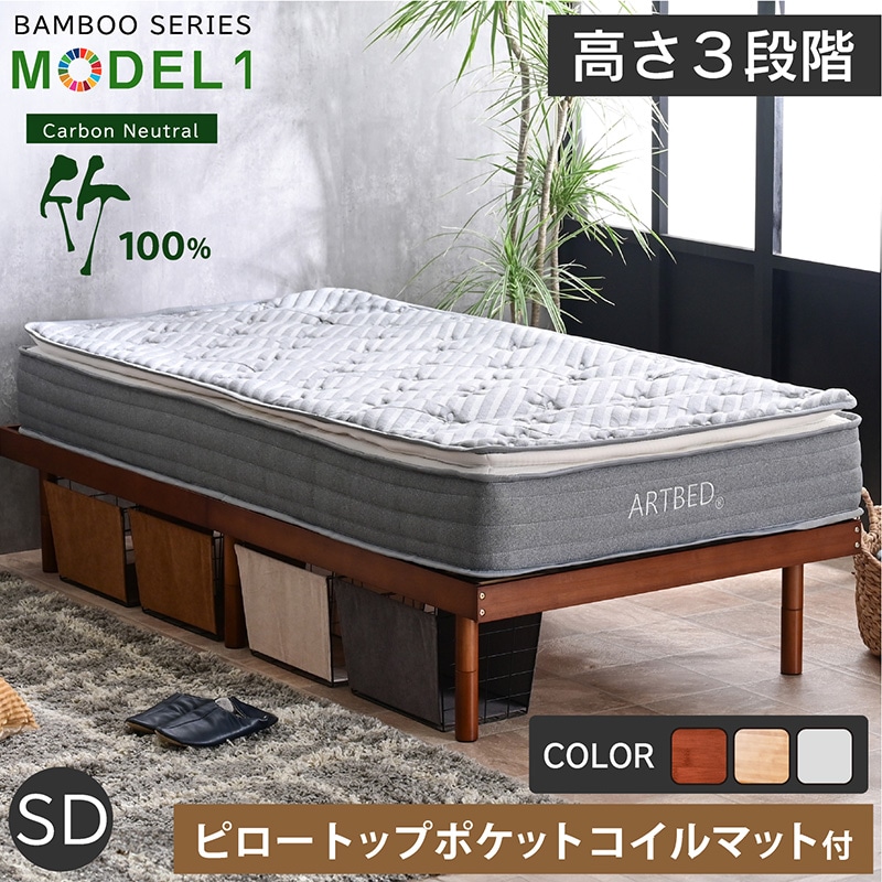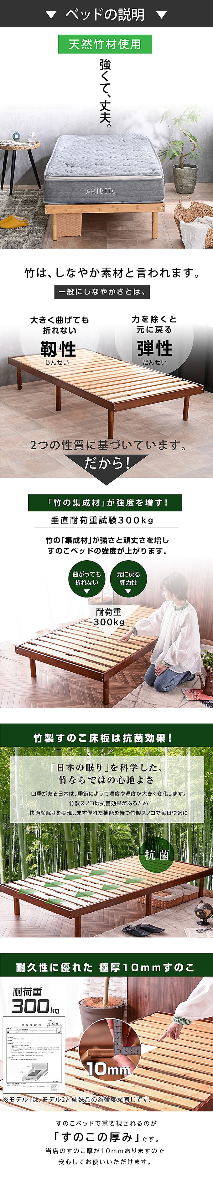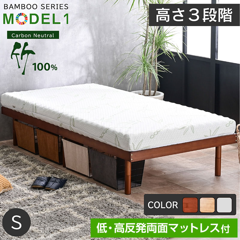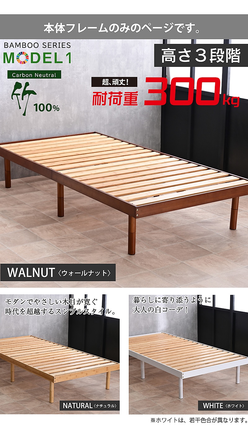 ベッド ベッドフレーム シングルベッド 最安値挑戦 天然木 竹 すのこベッド ローベッド 竹製 エコ素材 3段階高さ調節 モデル1 / ホワイト / -ART