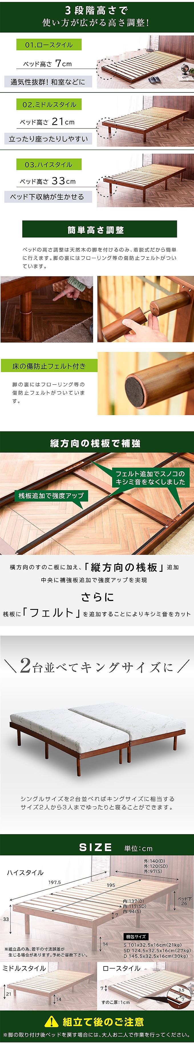 サイズ 本体フレーム:幅(S)97 (SD)120 (D)140 ×長197.5×高33(cm)