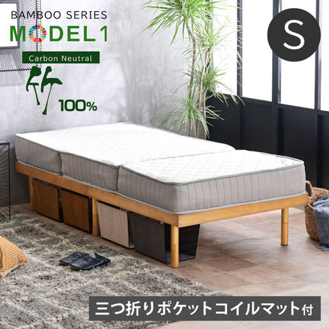 ベッド ベッドフレーム シングルベッド 最安値挑戦 天然木 竹 すのこベッド ローベッド 竹製 エコ素材 3段階高さ調節 モデル1 / ベッド:ナチュラル / マットレス:ホワイト / (圧縮ポケットマット付) -ART