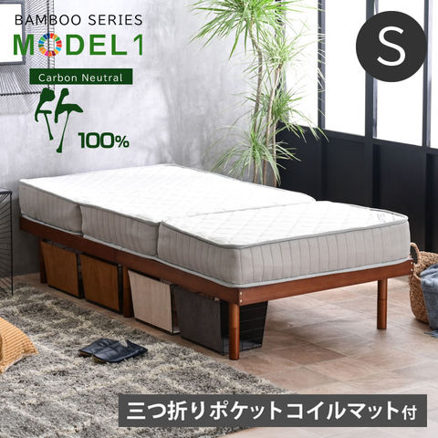 ベッド ベッドフレーム シングルベッド 最安値挑戦 天然木 竹 すのこベッド ローベッド 竹製 エコ素材 3段階高さ調節 モデル1 / ベッド:ウォールナット / マットレス:ホワイト / (圧縮ポケットマット付) -ART