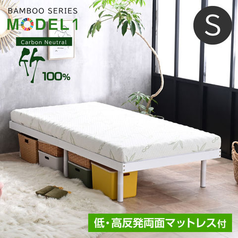 ベッド ベッドフレーム シングルベッド 最安値挑戦 天然木 竹 すのこベッド ローベッド 竹製 エコ素材 3段階高さ調節 モデル1 / ホワイト / (低反発 高反発 両面マット付) -ART