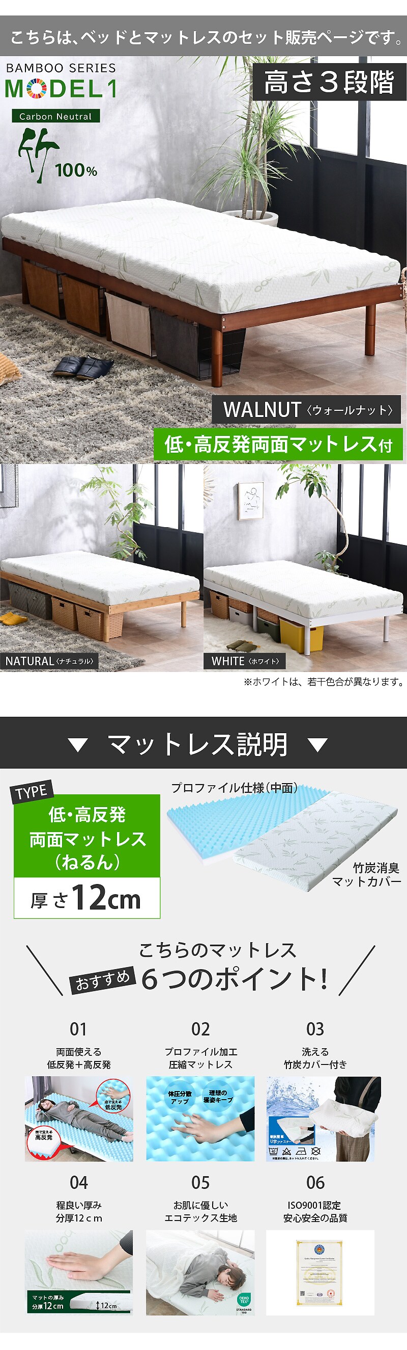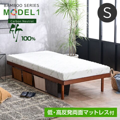 ベッド ベッドフレーム シングルベッド 最安値挑戦 天然木 竹 すのこベッド ローベッド 竹製 エコ素材 3段階高さ調節 モデル1 / ウォールナット / (低反発 高反発 両面マット付) -ART