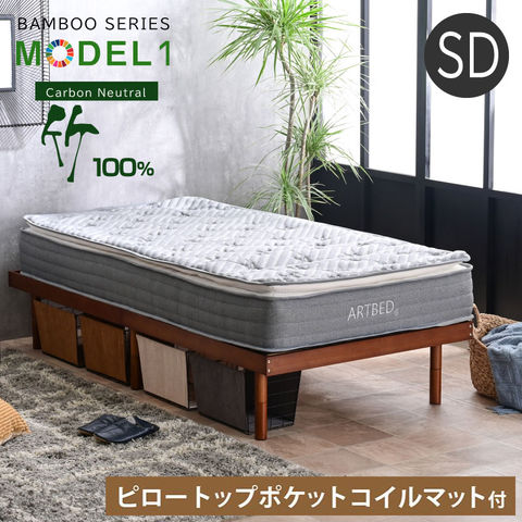 天然木竹 ベッド ベッドフレーム 最安値挑戦 セミダブルベッド すのこベッド ローベッド ベッド 3段階高さ調節 モデル1 / ウォールナット / (ピロートットプポケットマット付) -ART