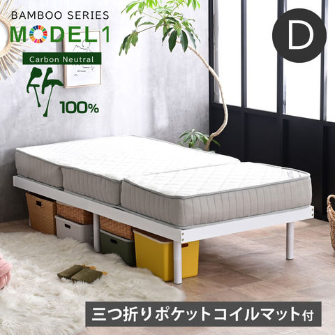 天然木竹 ベッド ベッドフレーム 最安値挑戦 ダブルベッド すのこベッド ローベッド ベッド 3段階高さ調節 モデル1 / ベッド:ホワイト / マットレス:ホワイト / (圧縮ポケットマット付) -ART