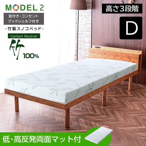 宮棚 コンセント 収納棚 最安値に挑戦 ベッド ダブル フレーム 2段階高さ調節 耐荷重300kg 頑丈 天然木 竹製 北欧 おしゃれ モデル2 / ナチュラル / (低反発 高反発 両面マット付) -ART