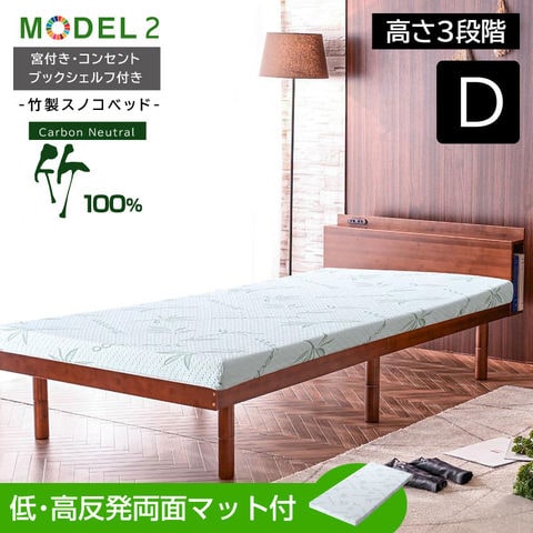 宮棚 コンセント 収納棚 最安値に挑戦 ベッド ダブル フレーム 2段階高さ調節 耐荷重300kg 頑丈 天然木 竹製 北欧 おしゃれ モデル2 / ウォールナット / (低反発 高反発 両面マット付) -ART