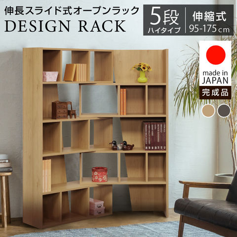 日本製 伸縮スライドラック ラック 完成品 ハイタイプ 175cm 5段 角度調整 伸縮ラック 本棚 収納 木製 オープンラック ディスプレイラック 整理棚 伸縮式 / ナチュラル / -ART