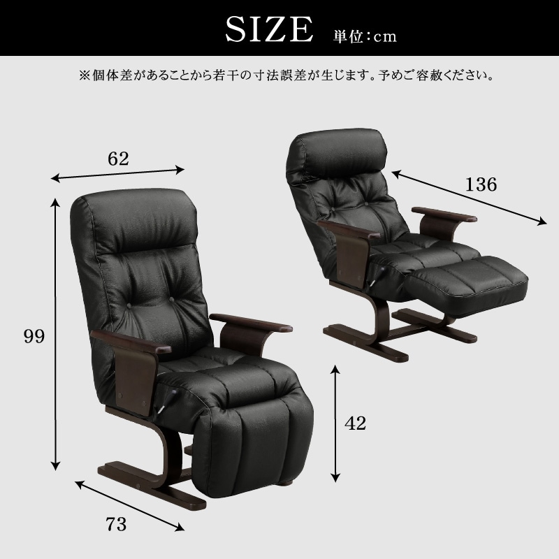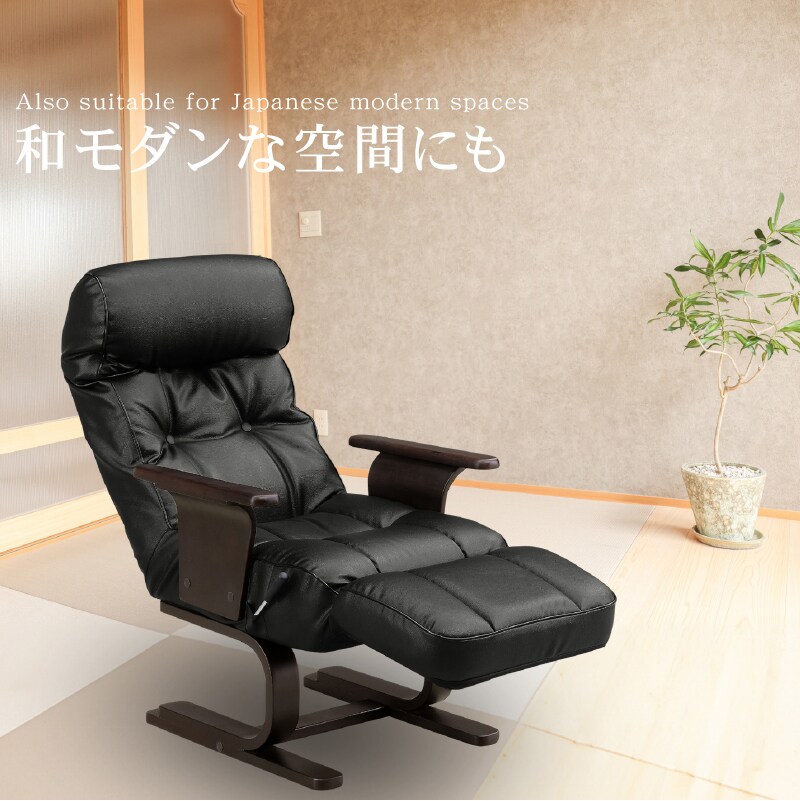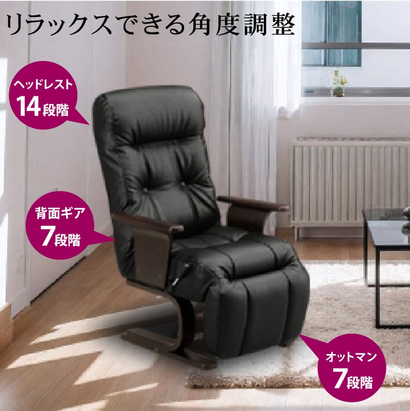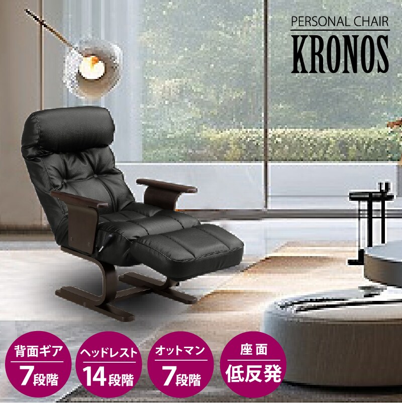 ラウンジチェア パーソナルチェア リクライニングチェア チェアー オットマン一体型 ラウンジチェアー 一人掛け 1人掛け 椅子 イス 北欧 クロノス / ブラック / -ART