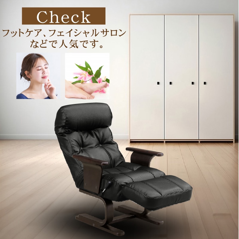 | 特徴 | ・背もたれはお好みの角度に調節可能なリクライニング機能 ・足がのばせるオットマン一体型でリラックス ・背面ギア7段階調節 ・ヘッドレスト14段階調節 ・座面低反発 ・自宅でも、オフィスでもお使いいただけます ・PVCレザーで柔らかくて手触りが良く、お手入れも簡単 ・フットケア・フェイシャルサロンなどでも人気! |