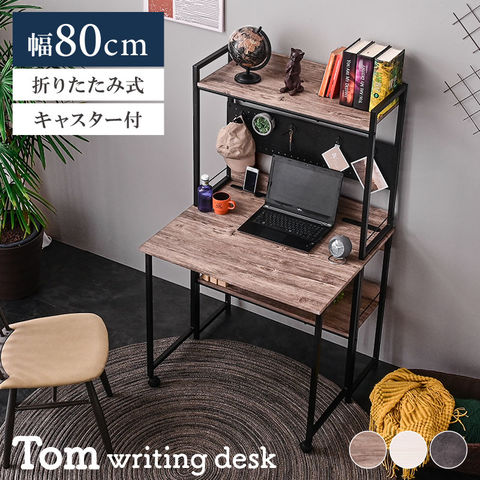 デスク ライティングデスク パソコンデスク PCデスク 幅80cm 折りたたみ たためる 畳める コンパクト コンセント トム / ダークブラウン / -ART