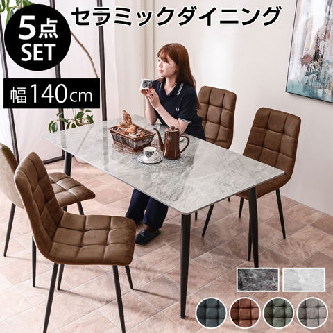 幅140セラミックダイニング5点セット(テーブル+チェア4脚付) ダイニングテーブル 食卓テーブル 食卓 大理石調 4人掛け BON ボン / テーブル:グレー / チェア:ブラウン / -ART